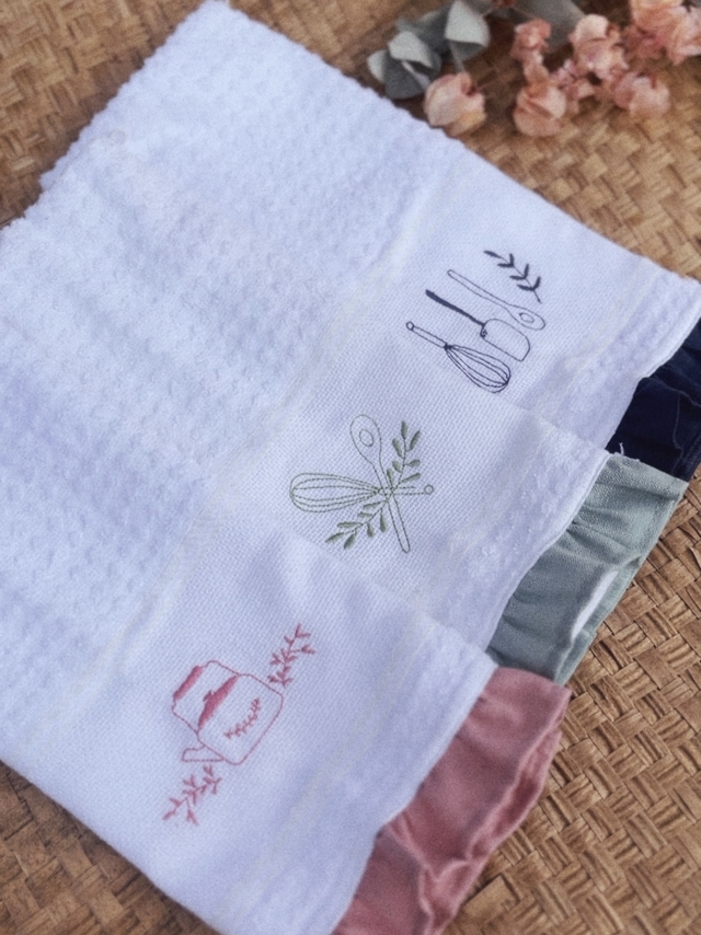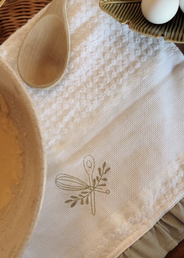O Pano de Prato Bordadinho é feito com tecido atoalhado, o que garante uma ótima absorção de líquidos, e conta com um delicado bordado de Cháleira na cor verde claro em sua superfície, tornando-o uma peça única e especial em sua cozinha.